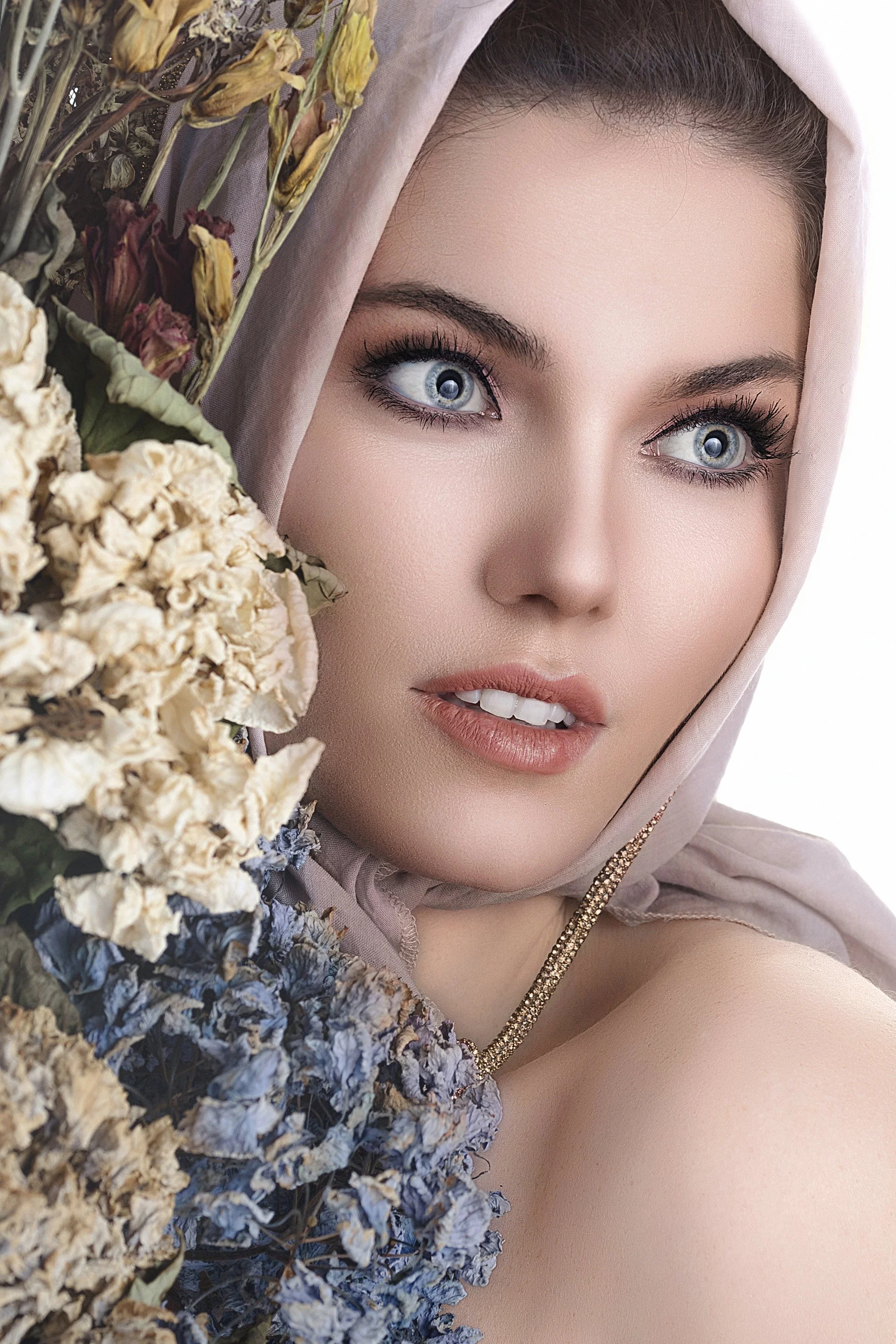 In Constellations of Her, Nina Žnideršič traces the many languages of femininity through light, gesture, and silence. Each portrait becomes a world unto itself, radiant yet interior, poised between the mythic and the contemporary. What we see are not likenesses but states of being: the quiet strength of a gaze, the authority of stillness, the shimmer of self-possession that refuses definition.